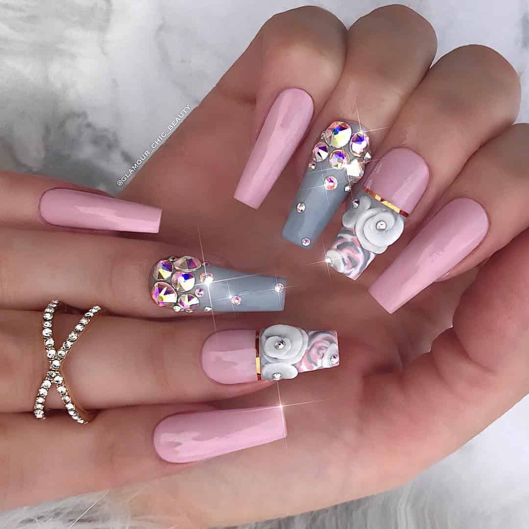 Rhinestone has various sizes, shapes, and colors. So Rhinestones coffin nails can create many different designs, think about how exciting it is. You can try the most personalized nail art according to your creativity.